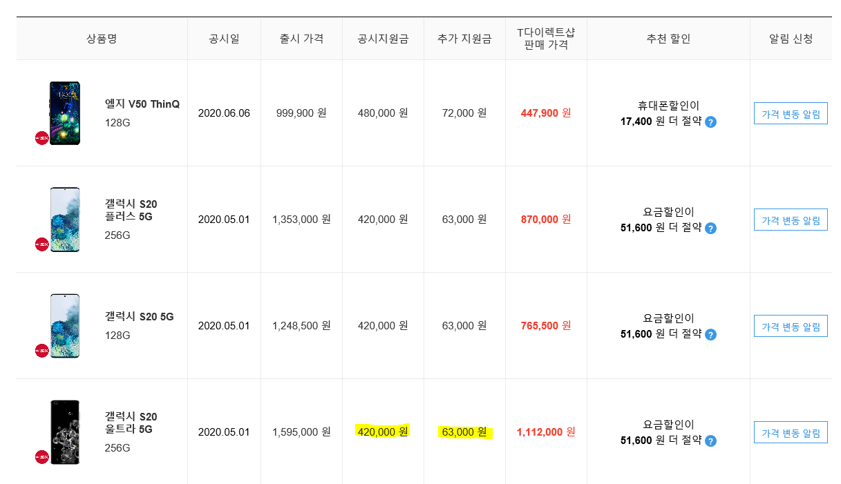 위 그림은 2020년 6월 22일 기준으로 T다이렉트에서 캡처한 화면입니다.